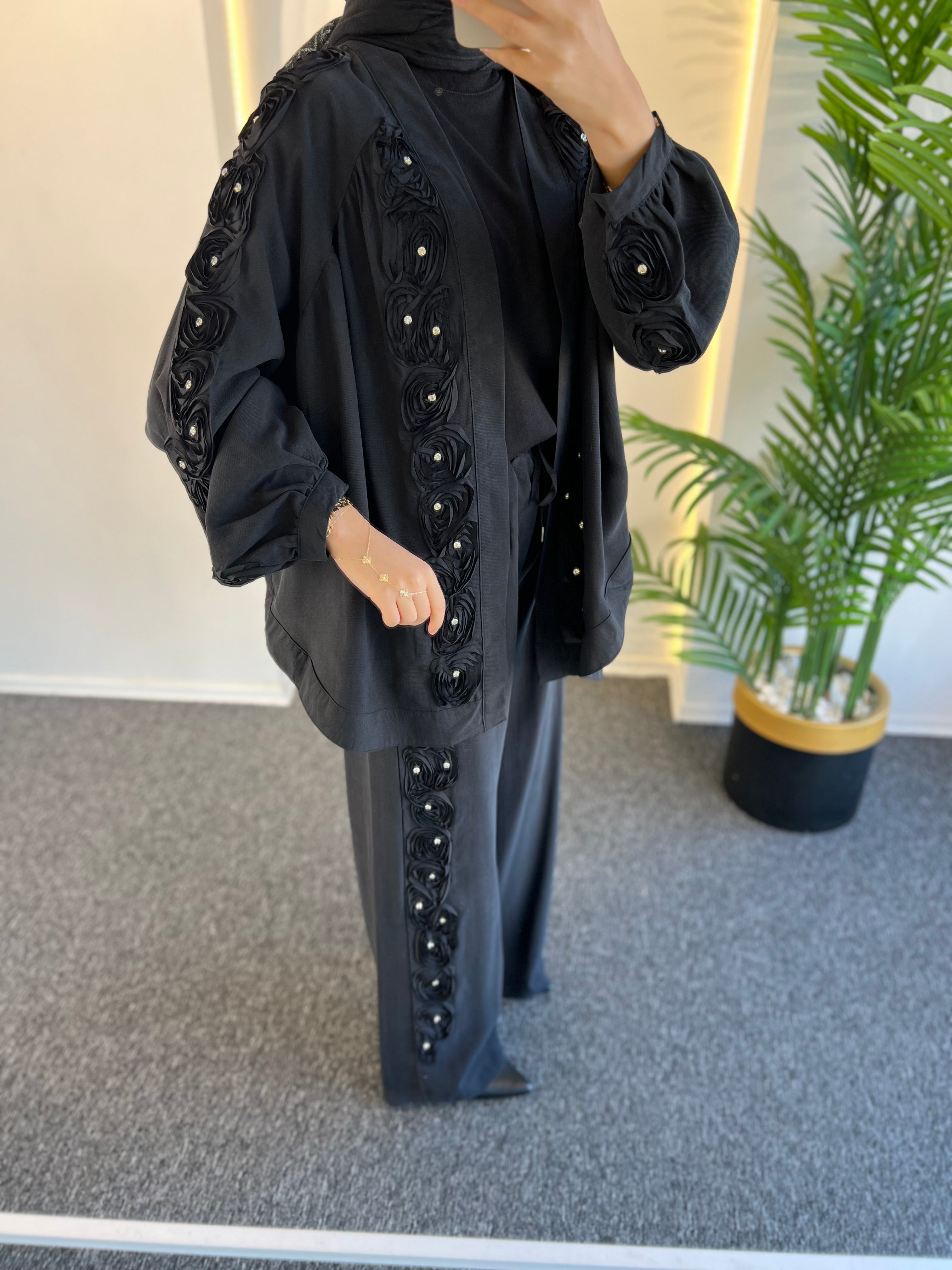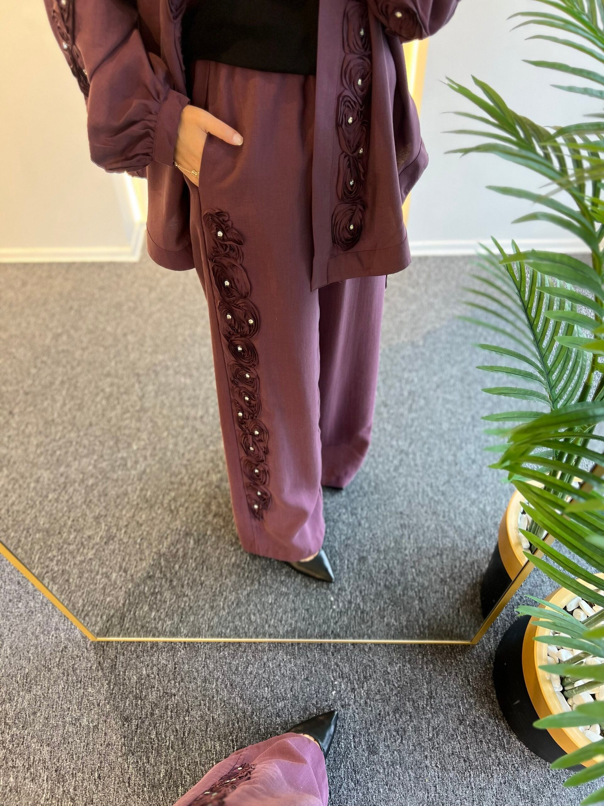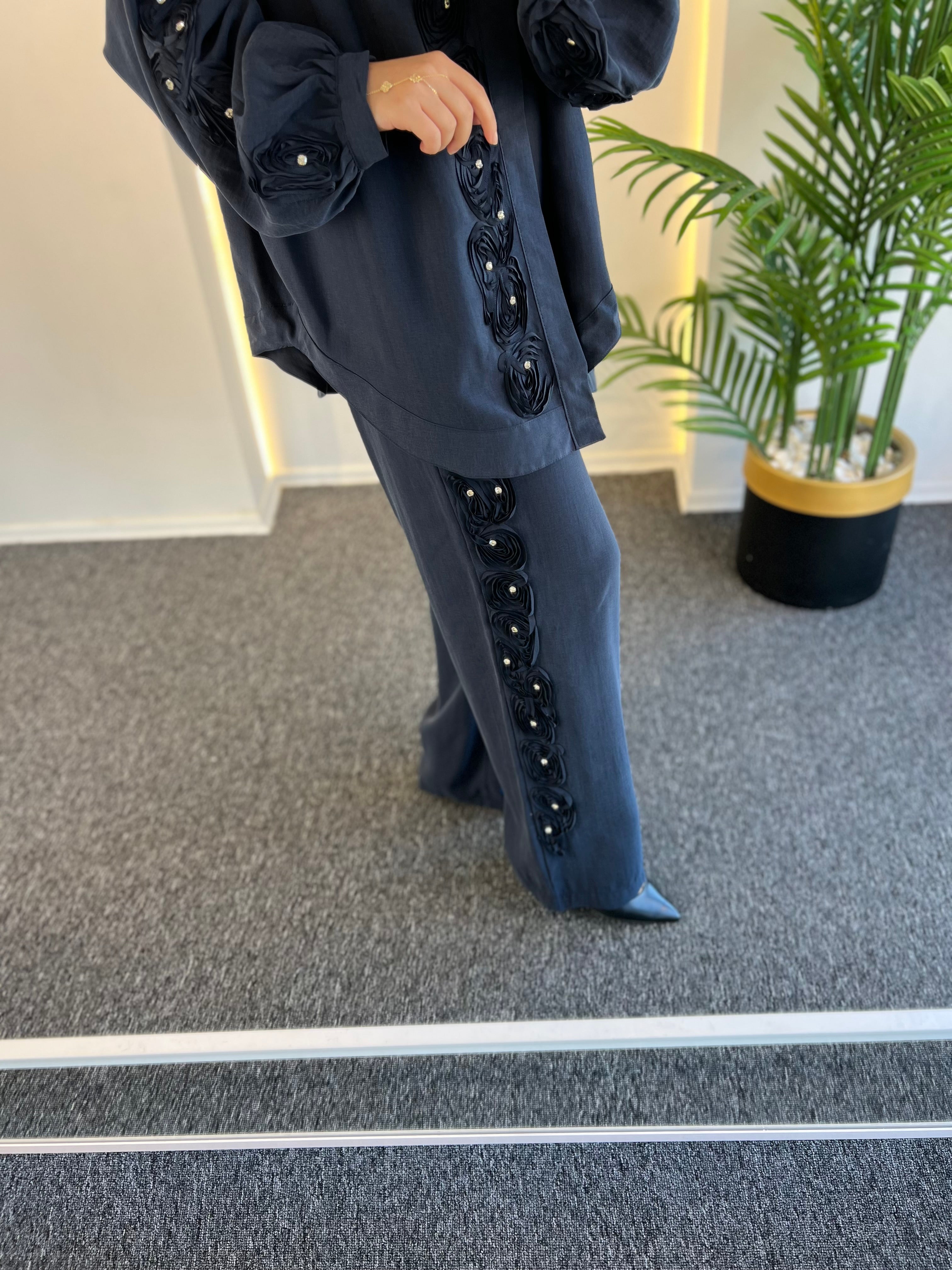• Taşlı Çiçek Pantolon